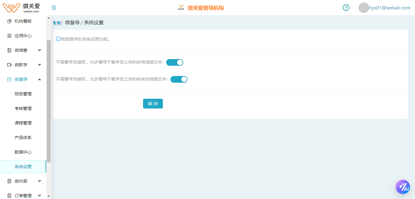不需要学员授权,允许督导下载学员上传的所有视频文件:打开后微督导的下载权限按照次规则生效